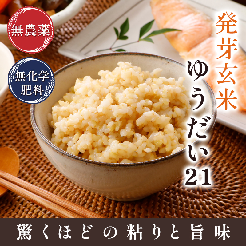 【新米予約】 発芽玄米 無農薬 ゆうだい21 福井県令和7年産 無農薬・無化学肥料栽培 真空パック※もちもちで食べやすい 食物繊維・ビタミンB群・ミネラル・GABAが豊富