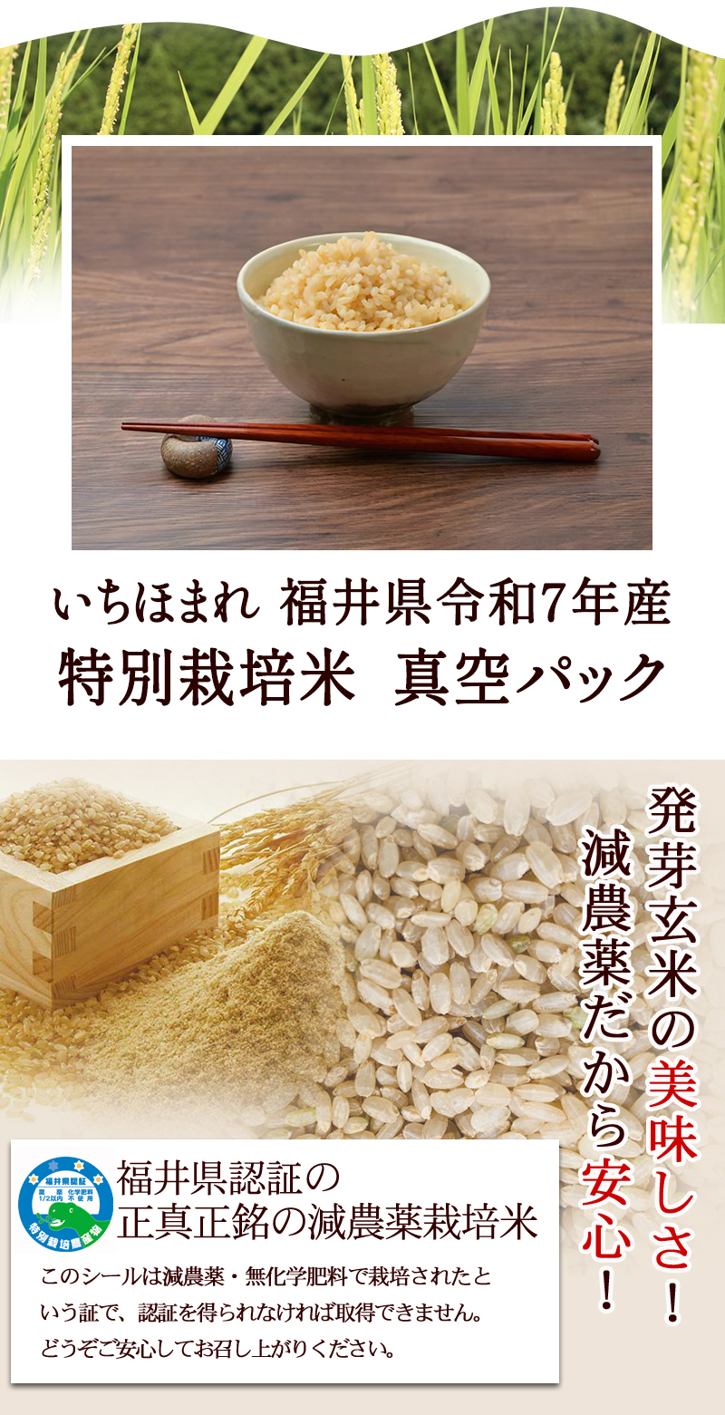 農薬の使用を最小限に抑え、澄んだ水と豊かな自然に恵まれた大地で育てた「いちほまれ」を発芽玄米に仕上げました。