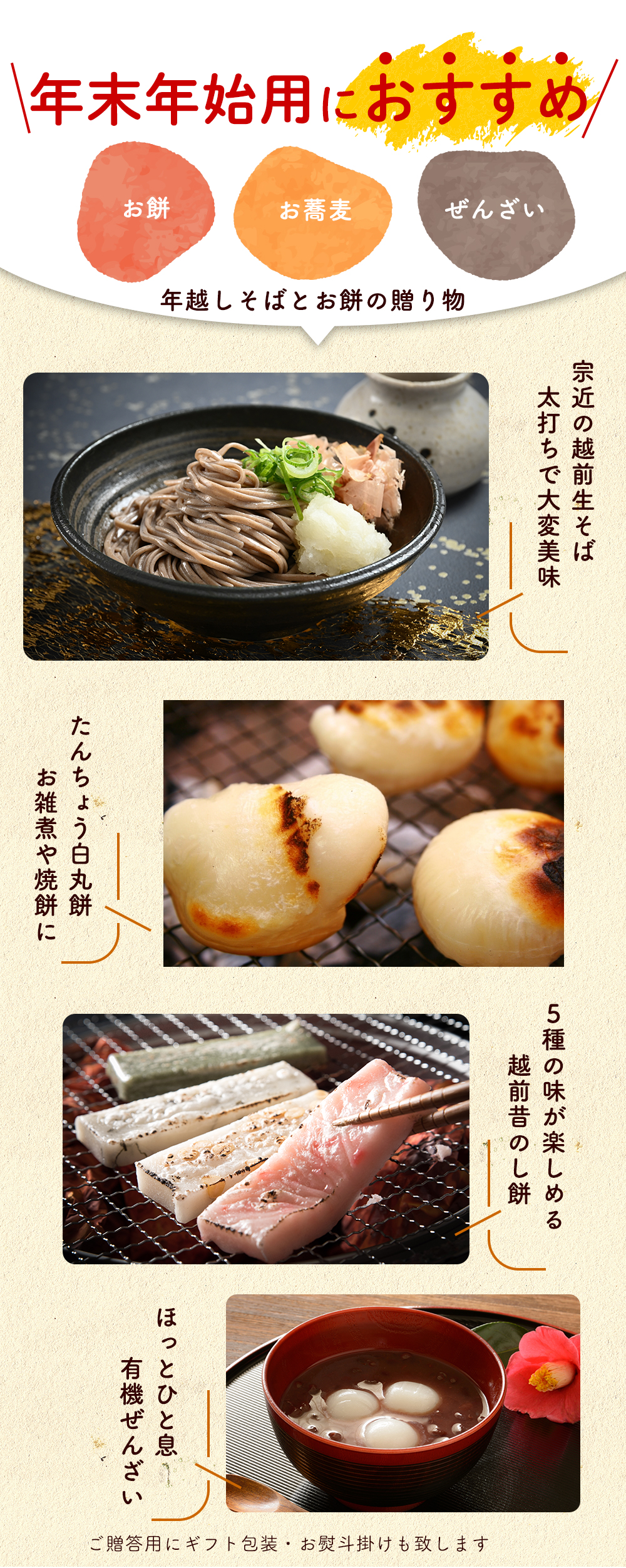 【年越しセット】たんちょう餅と越前そばセット (福井県産特別栽培たんちょうもち米使用)